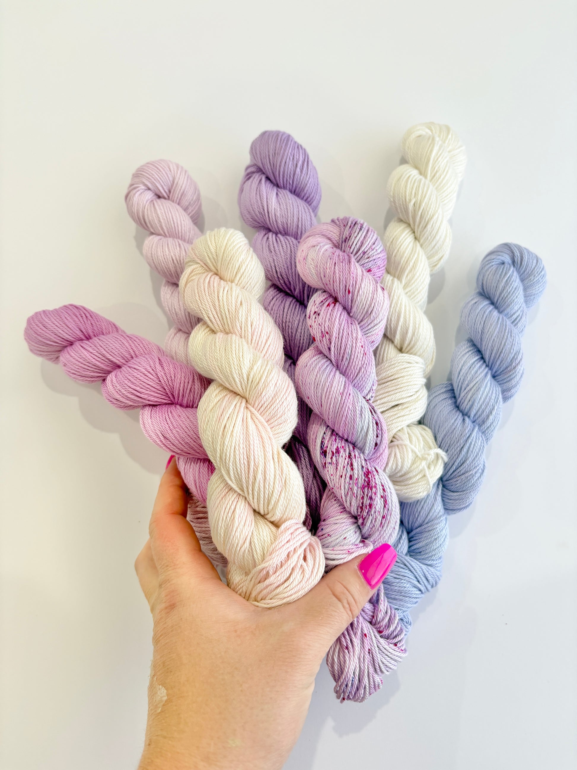 Indigo Blooms Collection - 7x 50g cakes 100% Egyptian Giza cotton mercerised - hand dyed yarn set